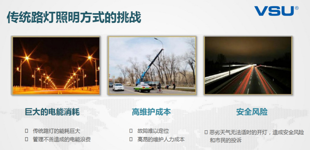 VSU依托公司在單燈控制器、集中控制管理器和硬軟件系統(tǒng)集成開(kāi)發(fā)能力,成功開(kāi)發(fā)VSU智慧路燈。VSU智慧路燈具有以下特點(diǎn):