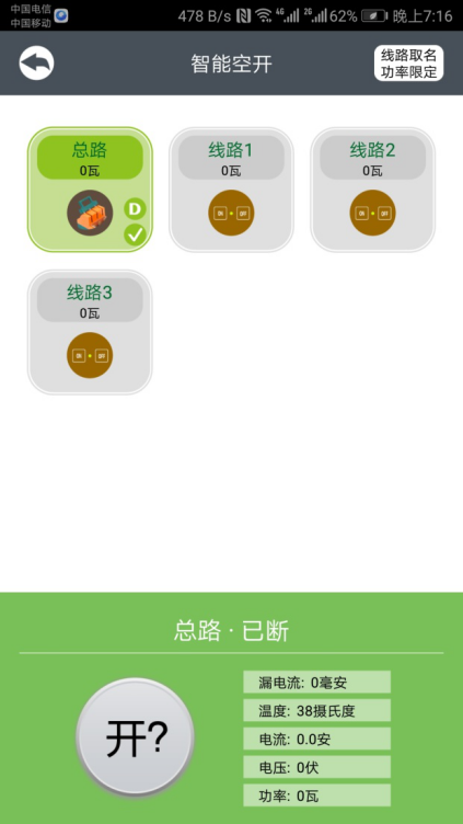 個人手機客戶端個人用戶通過手機號、微信、QQ登陸遠程設(shè)置、查詢、遙控或定時開關(guān)自動完成漏電保護功能自檢分線路用電計量,故障實時報警等。