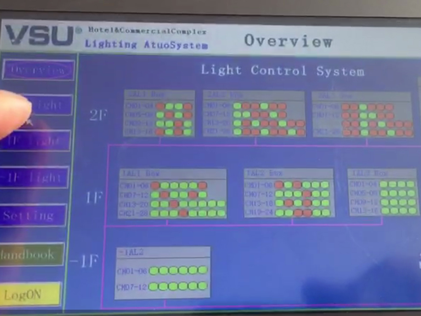 該項目位于老撾,使用VSU總線型智能照明控制系統(tǒng)的系列產(chǎn)品:4路、8路、16路16A智能照明模塊、網(wǎng)關主機、級聯(lián)模塊、7寸觸摸屏。通過現(xiàn)場安裝的7寸觸摸屏可對處理建筑所有燈具的開關控制,并能實時觀察到異常燈具的出現(xiàn),盡早安排維修,降低安全隱患。采用VSU智能照明控制系統(tǒng),將普通照明人為的開關轉換成為智能化管理,不僅使管理者能將其高素質的管理意識運用于照明控制系統(tǒng)中去,而且同時能很大程度上減少商務大廈的運行維護費用。