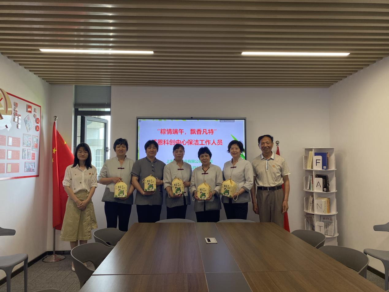 上海灣區(qū)科創(chuàng)中心是上海灣區(qū)的一張名片,幾乎每天都有來訪的領導和客戶,再加上科創(chuàng)中心展示廳作為滬浙毗鄰地區(qū)黨員紅色尋訪點,所以這里也就成了滬浙毗鄰地區(qū)黨支部活動的點位,這對負責樓內保潔的六位阿姨來說帶來了壓力,因此,她們早到晚離,及時擦亮這張名片,為來訪者提供清潔優(yōu)美的環(huán)境。為感謝這些默默無聞的奉獻者,6月7日下午,在端午節(jié)來臨之際,上海凡特實業(yè)有限公司黨支部和科創(chuàng)中心大樓內的保潔阿姨一起舉行“粽情端午,飄香凡特”感恩科創(chuàng)中心保潔阿姨的活動,活動首先向保潔阿姨講述了端午節(jié)的來歷,同時還送去了凡特公司自己包的粽子,情誼不在利的輕重,阿姨們十分感動,并表示要努力工作,確保科創(chuàng)中心大樓始終保持潔、齊、美。
