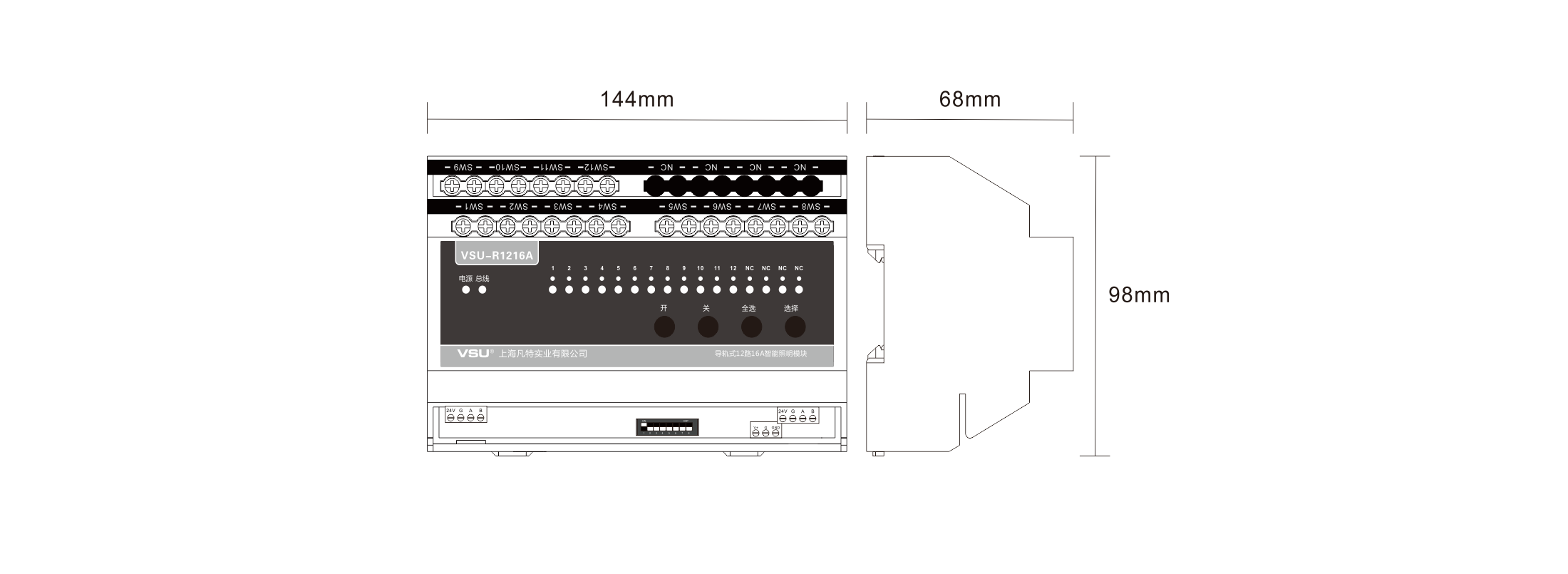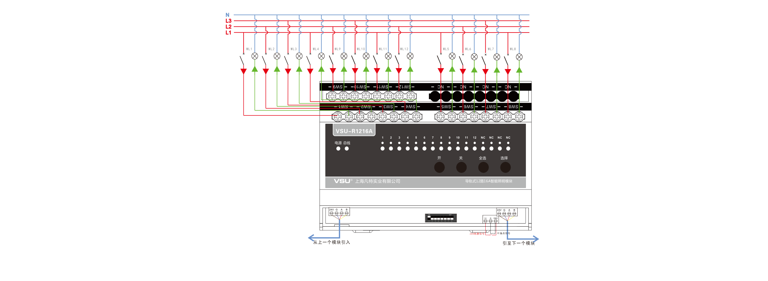 本產(chǎn)品為導(dǎo)軌式安裝,含12路智能繼電器,每回路可獨(dú)立控制3520W燈具的開關(guān),帶應(yīng)急按鍵,LED燈實(shí)時(shí)指示各個(gè)回路開關(guān)狀態(tài),可設(shè)置為互鎖控制6組窗簾開合;