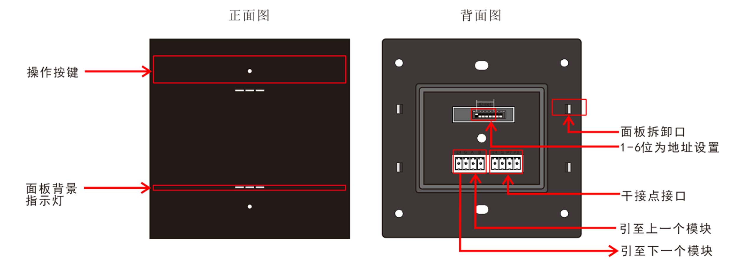 標準86底盒安裝,支持無縫聯(lián)接,提供2鍵,每個按鍵帶1路LED指示燈,復位式輕觸開關,結構成熟,性能穩(wěn)定,標準工藝,采用塑料材質(顏色可選灰色、黑色和香檳金);自帶感應式背光燈;提供兩路IO輸入可外接傳感器。