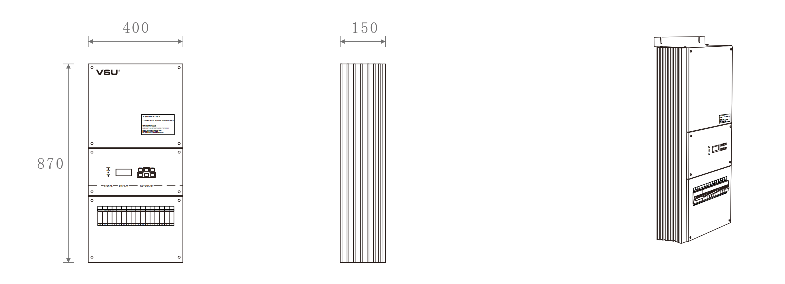 本產(chǎn)品為掛壁式安裝,前沿可控硅調(diào)光;12組調(diào)光通道輸出,每通道3200W;輕巧型設(shè)計美觀大方。帶斷路器保護(hù); |