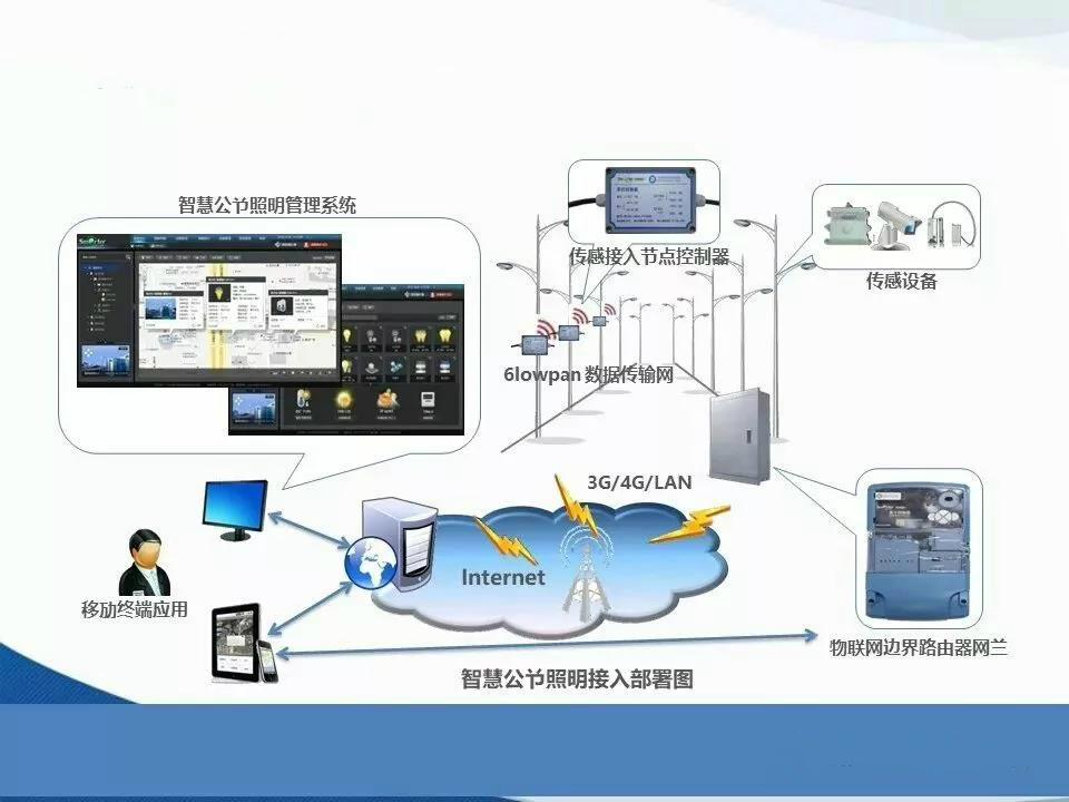 智慧照明又可以叫智慧公共照明管理平臺、智能路燈或智慧路燈,是根據(jù)運用專業(yè)、高效、可靠的電力線載波通訊技術(shù)和無線GPRS/CDMA通訊技術(shù)等,實現(xiàn)對路燈的遠程集中控制系統(tǒng)與管理方法,具備根據(jù)···